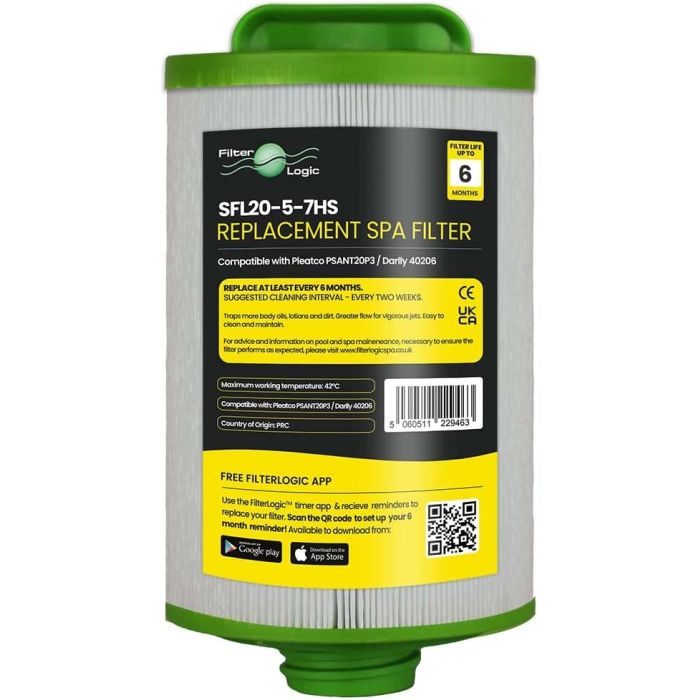 FilterLogic SFL20-5-7-HS Hot Tub Spa Filter compatible with Pleatco PSANT20P3 & Darlly SC728